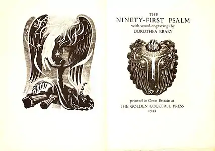 Some 120 works were published during the Sandford era. One favourite illustrator was John Buckland Wright, another Clifford Webb, from whom he commissioned wood engravings for eight books.[13] Sandford also commissioned Lettice Sandford, his wife, and artist Dorothea Braby, to work on multiple books produced by the press.