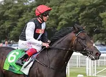 Dettori, who was winning the race for a record-equalling fourth time, said "I really believed in the horse. I was going so fast in the last 300 metres I knew no other horse would pass me. I had the best horse and I wanted to show how good he is. His record is unbelievable and he is probably the best horse I have ridden".[44] Gosden, who was winning the race for the first time said "It's great to win the Arc in France and the Derby in England – that's what it's about. When you're drawn wide, if you stay wide for a long time, you can run your own little race and not be bothered by anyone and then slot across. It was perfect as we sat behind the pacemaker and then kicked because as Frankie says, if you don't kick at a certain time here they come like arrows at your back".[45] He also suggested that the horse might make a final appearance in the Breeders' Cup Turf, saying "The owner is keen on the Breeders' Cup. It's a month away. If he's in good order, there's no reason we couldn't go there".[46]
