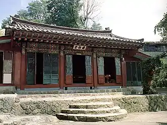 - Guksa-dang was removed to its current location at nearby Mount Inwangsan in 1925 when the Japanese colonial government built the State Shinto Chōsen Shrine on the peak.[36]