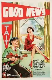 Good News is a 1930 American pre-Code musical film directed by Nick Grinde, and starring Bessie Love, Cliff Edwards, and Penny Singleton. The film was shot in black-and-white, although the finale was in Multicolor.