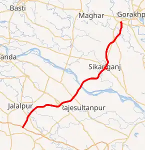 The Gorakhpur Link Expressway will connect Jaitpur village on Gorakhpur Bypass in Gorakhpur district with Salarpur village (south of Jalalpur) on Purvanchal Expressway in Azamgarh district.[1] It will pass through 4 districts of Uttar Pradesh i.e. Gorakhpur, Sant Kabir Nagar, Ambedkar Nagar and Azamgarh.