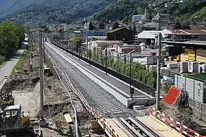 Gordola railway station (Italian: Stazione di Gordola) is a railway station in the municipality of Gordola, in the Swiss canton of Ticino. It is an intermediate stop on the standard gauge Giubiasco–Locarno line of Swiss Federal Railways.[3] The present station was rebuilt in 2019, with a new platform 200 metres (660 ft) east of the old station.[4]