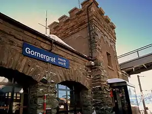 Gornergrat is the upper terminal railway station of the Gornergrat railway, a rack railway which links it with the resort of Zermatt. The station is situated at the summit of the Gornergrat, in the Swiss municipality of Zermatt and canton of Valais. At an altitude of 3,089 m (10,135 ft) above mean sea level, it is the highest open-air railway station in Europe.[1][2][3]