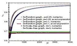 where Nreceive is the number of nodes that receive gradient flow and Nsend is the number of nodes that send gradient flow. The value of J is between 0 and 1; means no congestion, and corresponds to maximal congestion. In the limit , for an Erdős–Rényi random graph, the congestion factor becomes