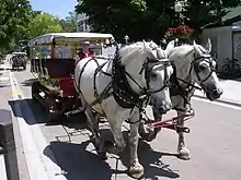 Mackinac Island does not permit motor vehicles (except for emergency vehicles and, in winter, snowmobiles), and transport to and from the dock to the hotel is via horse-drawn carriage. The only other motor vehicles allowed in recent history were cars brought over for the filming of Somewhere in Time. During the winter months, when ice prevents ferry transport from the mainland, the hotel is closed. The island also has a small airport (no fuel or services) for private aircraft. The horse-drawn taxis will take guests from the airport to the hotel or any other destination.[19]