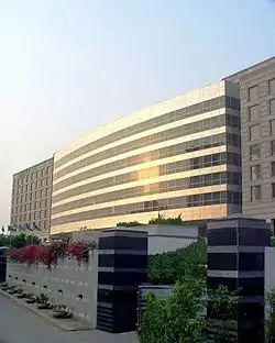 The hotel has a total of 547 rooms and 111 serviced apartments built on an area of about 18 acres.[1][2] The banquet level of the hotel offers over 30,000 square feet/2,790 square meters of conference and meeting space including one fully wired ballrooms in the city; seven additional meeting rooms and board rooms and a pre-function area. It also has four specialty restaurants — China House, Celini, Soma and Fifty Five East; which serve Indian and international cuisines. It also has a Bar, lounges, Gourmet Store, fitness center and a beauty salon which are situated inside a multi-level shopping plaza. It also has a Grand Club, Club Oasis spa, pool area and barbecue area for Residences, Kids play area, Business Center, outdoor recreation facilities and facilities for physically challenged guests and single women travelers. The hotel also has one of the largest collections of art in a public space in India, that showcases over 100 commissioned pieces of art by established and upcoming artists; curated in collaboration with Rajeev Sethi.