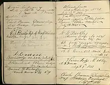 Freemasonry was established early in New Mexico's time as a territory of the United States, and Masonic lodges began to spring up in many areas where American immigrants increasingly settled. This phenomenon was highly accelerated by the extension of railroads into the Territory, starting in 1879.[10] In 1880 the railroad reached Albuquerque, and in 1881 Temple Lodge No.6 was chartered.[11] Gate City Lodge No.11 was established in Raton, where the Atchison, Topeka and Santa Fe Railway first crossed the pass into New Mexico three years prior.[12] The Southern Pacific Railroad joined two lines coming from the east and west at Deming in 1881, and in 1883 Deming Lodge No.12 was formed.[13] When the Santa Fe Railroad built shops at San Marcial in 1880, a community began to grow up around them, and in 1885 there were enough Masons living there to found Hiram Lodge No.13,[14] which became known as one of the "railroad Lodges." Logging and grazing in the area of Chama, New Mexico led to the extension of a line into the valley in the late 1880s, and Chama Lodge No.17 was chartered in 1889.[15] The trend continued for as long as the railroad boom was maintained, well into the 20th century. Many Lodges in New Mexico, including Bethlehem, Chama, Tucumcari, and Hiram still display images of Gilded Age locomotives on their banners in homage to their history.