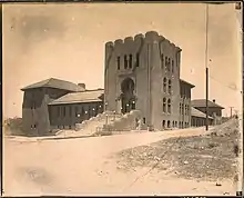 As farming and ranching expanded and new towns were settled, Masonic lodges followed. Animas Lodge No.15 in Farmington was founded in 1887[22] as settlers from Colorado arrived to pursue agriculture in the rich valley. The lodge itself first met the same year that the county was organized, and fourteen years before the town was incorporated.[23] San Juan Lodge No.25 was founded in nearby Aztec, New Mexico in 1905.[24] Portales Lodge No.26 was established by homesteaders in 1903, five years after the area was irrigated.[25] Elida Lodge No.31 was erected by homesteaders turned ranchers in 1907.[26] Cimarron Lodge No.37 had been chartered in 1875 by the Grand Lodge of Missouri but quickly folded. The lodge was revived in 1908, and included some members from the original lodge.[27]