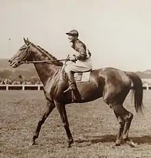 ![]() Prince Rose when he won the Prize of the President of the Republic (St. Cloud) in 1932 and his Belgian rider Cornelius Morjau. | |