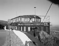 After 1931, the Ship Hotel blossomed. At noon on May 29, 1932, after it was announced in the local Bedford Gazette, the ship opened, offering tours, staff inspections, and concerts.[20][21][14] On that day, the Bedford American Legion Junior band, a local German band, and the Bedford High School band played, while a plane flew overhead dropping flowers on the ship's deck and a stilt walker entertained guests. The hotel was described as having "one of the most significant scenic views on the North American continent" with views of a fertile region of Pennsylvania, West Virginia, and of Maryland's rolling hills.[22][23][24] The main claim was that you could see three states and seven counties from the ship, with no official list of what one could see from the ship itself.