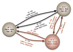 A labeled-property graph model is represented by a set of nodes, relationships, properties, and labels. Both nodes of data and their relationships are named and can store properties represented by key–value pairs. Nodes can be labelled to be grouped. The edges representing the relationships have two qualities: they always have a start node and an end node, and are directed;[12] making the graph a directed graph. Relationships can also have properties. This is useful in providing additional metadata and semantics to relationships of the nodes.[13] Direct storage of relationships allows a constant-time traversal.[14]