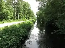 Hiking opportunities include the nearly .75-mile (1.21 km) (wheelchair-accessible) Dismal Town Boardwalk Trail, located on Washington Ditch Road, that winds through part of the swamp habitat; a number of the refuge's unpaved roads that are also open to bicycling; and the Dismal Swamp Canal Trail, an 8.5-mile (13.7 km) former section of Route 17 converted into a multi-use trail. The Dismal Swamp Canal Trail follows the eastern side of the swamp from a trailhead near Dominion Blvd south to within 1.5 miles (2.4 km) of the North Carolina border.
