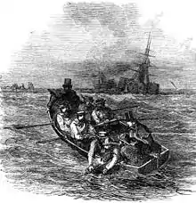 A few days before Magwitch's planned escape, Pip is tricked by an anonymous letter into going to a sluice-house near his old home, where he is seized by Orlick, who intends to murder him and freely admits to injuring Pip's sister. As Pip is about to be struck by a hammer, Herbert Pocket and Startop arrive and save Pip's life. The three of them pick up Magwitch to row him to the steamboat for Hamburg, but they are met by a police boat carrying Compeyson, who has offered to identify Magwitch. Magwitch seizes Compeyson, and they fight in the river. Seriously injured, Magwitch is taken by the police. Compeyson's body is found later.[27]
