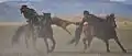 Traditional Kazakh game of Kokpar, fighting over a goat carcass at the Kazakh Altai Eagle Festival in Sagsai, Bayan-Ölgii Province, Mongolia.