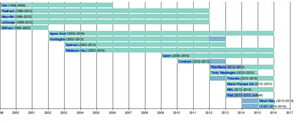 On May 6, 2015, the USA South Athletic Conference announced that Agnes Scott College, Salem College, and Wesleyan College would be leaving the GSAC and joining the USA South beginning in the 2016-2017 season.[9]