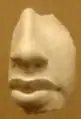 Between the Gem-Aten and the Sanctuary, the main building at the east end of the enclosure, was a smaller, more sacred pillared portico with statues of the pharaoh Akhenaten and his family standing in front of each column.[9] Inside the portico was a great quartzite stela next to a colossal seated statue of Akhenaten.[7] This stela was carved with images of Akhenaten and Nefertiti and was a variation of a benben stone, a sacred solar symbol of Heliopolis.[5] Traditionally, the benben stone was a representation of the island created by the sun-god Atum at the beginning of the world.[1] This marked one of the holiest areas in the Temple and it was heaped in flowers and offerings.[9] Today only a fragment of this stone has been found (discovered by Carter in 1892),[7] but it was identified as a benben stone based on scenes of the Temple found in nearby tombs.[5]