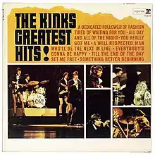 The Kinks Greatest Hits! was the first compilation album released in the US by British rock group the Kinks in 1966. The album consists of some of the most popular singles and songs released by the Kinks since 1964. It is the only Kinks album to reach the US top 10 peaking at #9. Stereo Pressing: All tracks are electronically processed Stereo with added reverb. The 1965 single "See My Friends" was not included on the album as, despite reaching #10 on the UK charts, it only made #111 in the US.