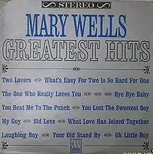 Mary Wells Greatest Hits is a greatest-hits compilation album released by Motown singer Mary Wells in 1964 on the Motown label. As the standout early star of Motown Records, Wells, thanks to producers such as Berry Gordy and Smokey Robinson, rose to prominence as Motown's first crossover star for a brief period between 1961 and 1964 before she left the label that year for 20th Century Fox Records. This collection collected the best of Wells' hits with the label.