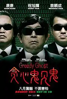 Greedy Ghost (simplified Chinese: 贪心鬼见鬼; pinyin: Tān Xīn Guĭ Jiàn Guĭ) is a Singaporean comedy horror film and the third film in the Singapore Ghost franchise, the first being Where Got Ghost?, and the second being The Ghosts Must Be Crazy, the cast differs, though, directed and written by Boris Boo.[3] The film is executive produced by local funnyman Mark Lee,[4] stars Kang Kang, Henry Thia, Brendan Yuen and Jesseca Liu,[3] and is about the greed of a worker at a funeral parlour causing him to see actual ghosts.[5] The film is Lee's very first attempt as an executive producer[6] and is also the inaugural time in which his talent company, Galaxy Entertainment, is funding a movie.[3] Officially opened in cinemas on 16 August 2012 in Singapore,[7] and on 26 July in Malaysia,[8] filming commenced and took place in the latter.[9][10]