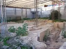 The complex, the only example of its type in Sicily, has parallels only in Delphi, Colophon, Olympia, and Gortys.[2] The structural similarity and the items discovered (perfume bottles, Italic and Punic amphorae, as well as Syracusan, Geloan and Siculo-Punic coins from the time of Timoleon) all help to date the site between the fourth and third centuries BC. The structure experienced several renovations: the creation of the conglomerate tubs in the first group of tubs in the first room, the creation of the second group tubs in the first room, the creation of the second room, the reinforcement of the northwestern part of room 1 with a stone wall.