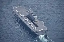 The Republic of Korea Navy is considered to be a green-water navy.[8] In 2011, the government authorized the building of a naval base on Jeju Island to support the new Dokdo-class amphibious assault ships, the base will also be capable of supporting joint forces with the US Navy.[18] A ski-jump for the operation of V/STOL jet fighters is being considered for the second ship of the Dokdo class.[19] The Korean government is considering to buy surplus Harriers as a possible interim for the F-35 Lightning II if they choose to operate VTOL aircraft at all.[20] On December 3rd 2021 the National Assembly passed the budget to fund a fixed-wing aircraft carrier tentatively named CVX-class aircraft carrier capable of operating F35B, expected to enter operations possibly as early as 2033 LinkLinkLink South Korea participates in the Combined Task Force 151 with the expeditionary force Cheonghae Unit