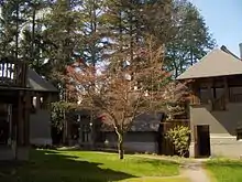 In 1935, the Grand Campus Washout eroded a deep ravine across the east end of the grounds. After several days of erosion, the Gardener's shed collapsed into the ravine. Afterwards, the gully was filled with debris from a nearby landslide.[3] The shed was not rebuilt. The landslide area can be identified today by the younger trees on the fill area and a sudden decrease in elevation where the fill has compacted.