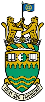 The college's coat of arms features two cougars grasping a flagpole above a shield, and includes the college's motto "Ideas and Friendship". It was registered with the Canadian Heraldic Authority on January 15, 1996.[11]