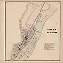 Much like its larger neighboring cities; Troy, Watervliet, and Cohoes; Green Island was a major manufacturing and transportation center. In 1823, the Federal Dam was built between Green Island and Troy, allowing for year-round navigation north on the Hudson River to Waterford and Lansingburgh. In 1834, a terminal was built on the island by the Rensselaer and Saratoga Railroad, which the following year built the first Green Island Bridge for railroad use from Green Island to Troy.[9] The Rensselaer and Saratoga Railroad built its locomotive and car shops in 1842 in Green Island.[9][10] Even after the Delaware and Hudson Railroad (D&H) took over and consolidated operations to the Colonie Shops (just west of Watervliet), the Green Island Shops continued to be a repair shop and were frequently mentioned in trade magazines during the 1930s regarding their experiments with new methods and materials; such as light weight steel.[10] Green Island, population 800, was incorporated in 1853 as a village in the town of Watervliet.[9][11] In that same year the Gilbert Car Company had a railroad car factory built in Green Island after their Troy location burned, it too would experience a fire in 1862, and finally went out of business in 1895.[12] The town of Green Island was formed in 1896, which also created the city of Watervliet,[13] a year after the division of the original town of Watervliet that created the town of Colonie.[14]