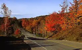 The Niagara Escarpment Biosphere Reserve is a geological formation reaching 725 kilometres long and up to 500 metres tall. It began as coastline of the Michigan Basin 450 million years ago.[8] It was designated as one of 15 UNESCO World Biosphere Reserves in Canada in 1990. It is managed jointly by Ministry of Natural Resources and the Niagara Escarpment Commission. The area is protected due to the many unique species and prime recreation grounds. Tourism associated with the escarpment contributes $100 million to local and regional economies.[8]