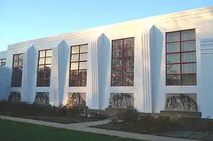 The "Rural High School", later Greenbelt Middle School, was built between 1936 and 1945. Like the elementary school, it is a notable Art Deco building, using glass block extensively.