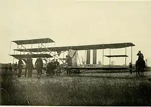 In 1909, at the Morris Park Raceway, Dr. William Greene constructed a biplane that successfully flew for the first time on October 28, 1909.[1][2] The aircraft was in the Curtiss style with dual forward elevators and dual trailing rudders and a tricycle landing gear.