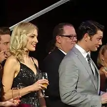 Between seasons of Grease, Scarlett was cast as 'Sally' in the world premiere concert of Matthew Lee Robinson's Happy People at Melbourne's Chapel off Chapel on 18 and 19 October, starring alongside Bobby Fox (Jersey Boys), Tom Sharah (That '90s Show), Sun Park (Mamma Mia!), Bert LaBonté (The Mountaintop) and Robyn Arthur (The Boy From Oz), with direction by Chris Parker.[16] The show received positive reviews, and Gretel Scarlett was received positively for demonstrating her versatility to what most Australian audiences have been unaware of. One reviewer stated "Scarlett as the manically cheerful Sally shows off some fantastic comedic chops, as well as her stunning voice of both range and power"[17] and Sun Herald theatre critic, Simon Parris, stated she showed "a far deeper level of talent than she is able to demonstrate when performing the simple level of direction she has been given in Grease. Looking absolutely gorgeous as the Barbie-like Sally, Scarlett enhances the character’s Pollyanna outlook with a delicately vulnerable undercurrent. Her performance of "Nice" is nothing short of sensational."[18]