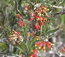 This grevillea grows in woodland, mallee shrubland and scrub, mainly between Bremer Bay, Borden, Cranbrook and Albany in the Avon Wheatbelt, Esperance Plains and Jarrah Forest biogeographic regions of south-western Western Australia.[2][3]