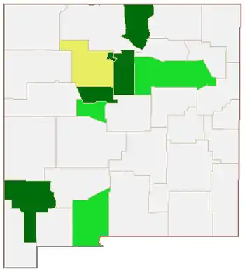 Same-sex marriage became legally recognized statewide in the U.S. state of New Mexico through a ruling by the New Mexico Supreme Court on December 19, 2013, requiring all county clerks to issue marriage licenses to qualified couples seeking marriage regardless of gender. Until then, same-sex couples could only obtain marriage licenses in certain counties of the state. Eight of the 33 counties, covering 58% of the state's population, had begun issuing marriage licenses to same-sex couples in August and September 2013. New Mexico's marriage statute is not specific as to gender. It is the only state lacking a state statute or constitutional provision explicitly addressing same-sex marriage. Lacking a state law or judicial ruling concerning same-sex marriage prior to December 19, 2013, policy for the issuance of marriage licenses to same-sex couples was determined at the county level at the discretion of local issuing authorities i.e., some counties recognized same-sex marriage and issued marriage licenses to same-sex couples, while others did not.[1] Despite the ruling by the New Mexico Supreme Court allowing same-sex marriages in the state, some of New Mexico's Native American tribes (most notably the Navajo Nation) continue to prohibit same-sex marriages within their jurisdictions and do not recognize same-sex marriages performed elsewhere. The San Ildefonso Pueblo's tribal code recognizes state law to a degree, but its tribal marriage certificates require licenses be issues to an unmarried male and unmarried female.