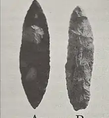 63, divided into 3 subgroups | Hunting/fishing/warfare | Also known as “arrowheads”; are thought to be arrow-tips for bows-and-arrows. The usage of the bow-and-arrow seems to have greatly increased during the Late Woodland, probably as a result of increased conflict.[2][3] |