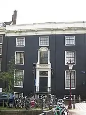 In 1733 he married Alida Jacoba Hilken with whom he had eight children.[48] In 1735 he cooperated with his brother Johannes (IV) to promote the trade with Sweden. Spanish pieces of eight were used to produce silver ingots that were shipped on the Rooswijk, which sank in 1740.[49] In 1742 both brothers lived separately on Herengracht;[50] they each owned a chaise and two horses.[51] In 1747 they sold the silver melting business at the end of Spiegelgracht, and concentrated on banking and assurance on ships and goods for customers in Sweden.[52][53] Around 1751, they moved into the "Huis met de Hoofden" which they rented from the descendants of Louis De Geer. He wrote twice a week to Stockholm.[54] When Johannes died – with whom he shared many bills of exchange – Anthoni Grill became the only heir and his other siblings were bequeathed.[55]