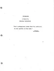 "Grimhaven" is the manuscript for an unpublished book by hard-boiled crime writer Charles Willeford. Originally intended as Willeford's sequel to Miami Blues, the novel was deemed too dark for publication, and his agent refused to send it on to the publisher.[1] The novel New Hope for the Dead was later written and published as the second book in the Hoke Moseley series.