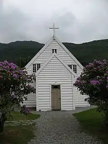 Grindheim Church (Norwegian: Grindheim kyrkje) is a parish church of the Church of Norway in Etne Municipality in Vestland county, Norway. It is located in the village of Etnesjøen. It is one of the churches for the Etne parish which is part of the Sunnhordland prosti (deanery) in the Diocese of Bjørgvin. The white, wooden church was built in a long church design in 1724 using plans drawn up by an unknown architect. The church seats about 250 people.[1][2]