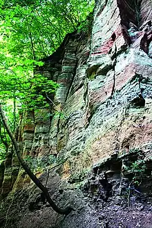 Adjoining the village lies the Rödel Plateau with its porous limestone layers. The important limestone quarry “Rödel” served for producing large-sized cut stones of highest quality and supplied the Naumburg Cathedral with building material. Neuenburg Castle was almost entirely built using the local shell limestone. Structural elements of higher quality were made using shell limestone from the surrounding quarries. This quarry also is visible and unchanged until today, as are the transport paths for the limestone to Naumburg.