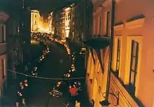 In 2004 another symbol of now vanished Jewish district appeared in Lublin. An original street lantern on Podwale St. that has remained there since the prewar times (now adapted for electricity) embodies Jewish presence in the area. It was lit as a commemoration token during the second mystery of memory "Poem of the Place" and has been on ever since, night and day.[10]