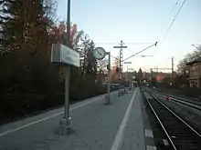 The station has two platform tracks next to a central platform, which is 145 metres long and 76 cm high[7] and is accessible from both sides, but is not accessible for the disabled.[8] The S-Bahn station is served by S-Bahn lines S 7 from Wolfratshausen to Kreuzstraße every 20 minutes and S 20 from Höllriegelskreuth to Pasing hourly from Monday and Friday.
