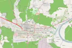 Grunwaldzka street is mentioned on an 1855 address book of Bromberg,[1] but appears as early as 1827 as a path to Nakło nad Notecią.[2] On an 1857 map, then on an 1876 city map the axis is mentioned as a Berliner Chaussee[3] or Highway to Berlin. At that time, it appears as an extension of the Berliner Straße (today's Swiętej Trojcy street) to the west. In 1851, the railway from Berlin to Kaliningrad -via Bromberg- is built along that path. In 1895, a narrow-gauge railway from Bydgoszcz to Koronowo was laid, with a station on Grunwaldzka street, Bydgoszcz Wąskotorowa, linked to the city tram network in 1898. The railway did not survive WWII and is now operated for touristic purposes between two villages west of Nakło: railtracks on Grunwaldzka were pulled part in 1969. The tramway line in the street has been dismantled in 1984.[4]