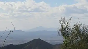 Gu Achi Peak viewed from the east, 45 miles away in the Tucson Mountains