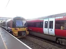 During Monday to Saturday daytimes services run to/from Leeds and Bradford twice per hour, meaning that as Guiseley is the first station that is served by trains on both branches of the line, there are four services every hour to Ilkley. During Monday to Saturday evenings, services are hourly to/from both Leeds and Bradford Forster Square. On Sundays, services are hourly to/from Leeds and Bradford.[1] Services at the station are operated by British Rail Class 333 and Class 331 electric multiple units.