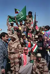 Kuwaitis founded a local armed resistance movement following the Iraqi occupation of Kuwait.[79][80][81] The Kuwaiti resistance's casualty rate far exceeded that of the coalition military forces and Western hostages.[82] The resistance predominantly consisted of ordinary citizens who lacked any form of training and supervision.[82]