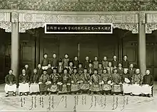 When the Xinhai Revolution broke out in 1911, Gungsangnorbu probably joined the Royalist Party and advocated the independence of Mongolia from China. As Outer Mongolia managed to gain independence with Russian support, Gungsangnorbu turned to the Japanese. He and other Inner Mongolian princes took loans and received arms from the Japanese to prepare their secession from China. The Imperial Japanese Army even dispatched a major and two captains in December 1911 to act as liaison officers for Gungsangnorbu.[6] In the aftermath of the Xinhai Revolution, Gungsangnorbu made some attempts to form an alliance with Bogd Khan and the Khalkha Mongols in the newly independent state of Mongolia, with the Pan-Mongolist aim of annexing China's Inner Mongolian territories to an independent, Mongol-dominated Greater Mongolia. However, political fragmentation and the reality of a large Han Chinese population in his own domains thwarted this idea. He restricted himself to a more modest effort to attempt to consolidate his own power and unite the Inner Mongolian nobility. He began purchasing weapons from a group of Japanese army officers in Beijing connected to Kawashima Naniwa; however, the arms shipments were intercepted and the officers involved arrested, bringing to an end Gungsangnorbu's efforts to strengthen his own military power.[9] Instead, he participated in Yuan Shikai's Beiyang Government, taking a position as director of the Mongolian and Tibetan Affairs Commission, and overseeing the establishment of the Mongolian and Tibetan Academy in Beijing, which trained a number of cadres who would go on to achieve prominence in Inner Mongolian politics in the coming decades.[2] He was the only Mongol prince to achieve ministerial rank in Yuan's government.[3] He would hold that position for seventeen years, though in the chaos of the warlord era he was not able to achieve all that he hoped for. After the 1928 Northern Expedition he resigned from his position, and died two years later.[3]