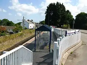 Gunnislake railway station serves the village of Gunnislake in Cornwall, England. There are also connecting buses from here to the town of Tavistock. However the station is located in or nearer to the villages of Drakewalls and Albaston. It is the northern terminus of the Tamar Valley Line from Plymouth.