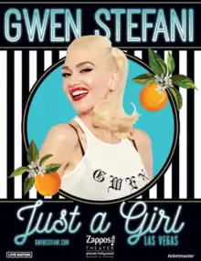 Gwen Stefani – Just a Girl was a concert residency held at the Zappos Theater in Las Vegas by American singer Gwen Stefani. The show, which is named after the song of the same name by Stefani's band No Doubt, opened on June 27, 2018, and concluded on November 6, 2021. Originally scheduled to end on May 16, 2020, the final eight performances were postponed due to the COVID-19 pandemic.