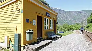 Håreina Station (Norwegian: Håreina holdeplass) is a railway station in Aurland, Norway, on the Flåm Line. It is 17.21 kilometers (10.69 mi) from Myrdal Station, 353.01 kilometers (219.35 mi) from Oslo Central Station and 48 meters (157 ft) above mean sea level. The station opened on 1 August 1940.[1][2]