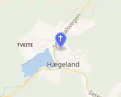Hægeland Church (Norwegian: Hægeland kirke) is a parish church of the Church of Norway in Vennesla Municipality in Agder county, Norway. It is located in the village of Hægeland. It is the church for the Hægeland parish which is part of the Otredal prosti (deanery) in the Diocese of Agder og Telemark. The white, wooden church was built in a octagonal design in 1830 using plans drawn up by the architect Anders Thorsen Syrtveit. The church seats about 250 people.[1][2]